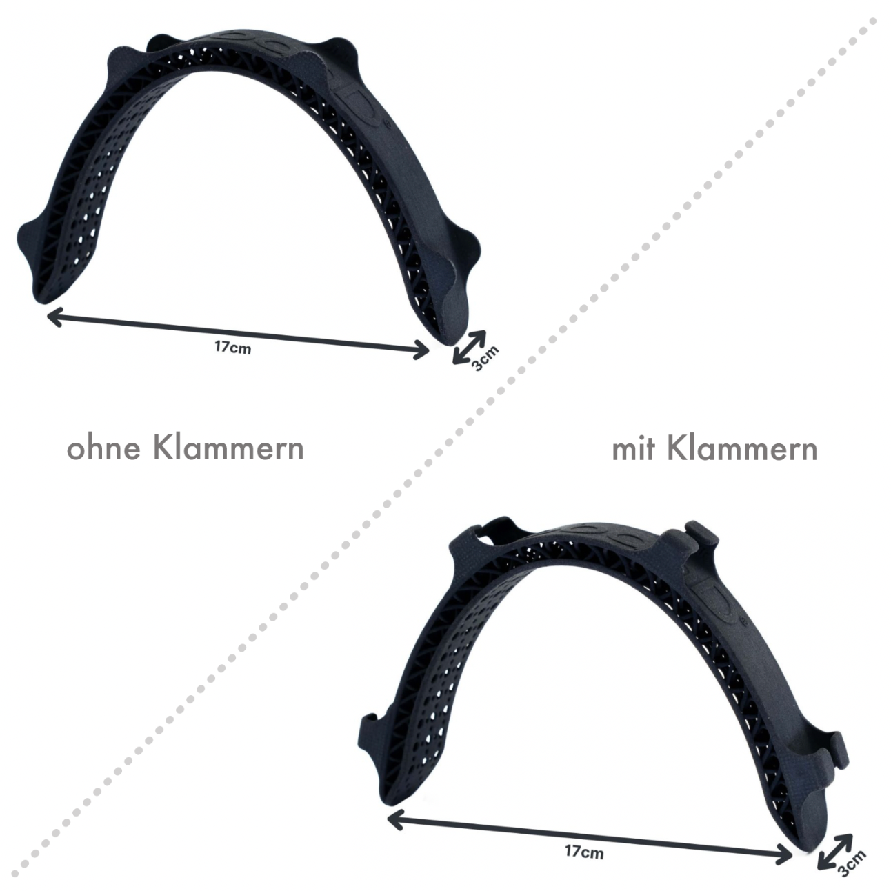 - Ohne Klammern: Ohne Klammern lässt sich das Nasenpad leichter an- und abnehmen und bietet dennoch ausreichend Halt und Komfort für den täglichen Gebrauch und entspanntere Reiteinheiten.
